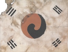 Jingwan-sa dat als een van de eerste openbare plaatsen het nationale symbool (boven) liet zien nadat het in het geheim was ontworpen door een monnik die een nationalistische agenda steunde.