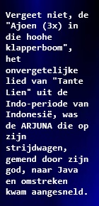 (bij de foto) Het mini-artikeltje over schaduwpoppenDe vaak versleten en verschoten wajang-poppen die in het recente verleden werden aangetroffen in "een winkeltje" hier en daar doorheen Nederland, of die bewaard zijn gebleven in dit of dat museum, zijn zelden nog voorzien van een eigennaam. Het zijn decoratiestukken geworden waarvan de koper over het algemeen nooit geweten zal hebben dat ze "echte" figuren voorstelden.Samantabhadra, de monnik en vertaler?De Royal Asiatic Society of Great Britain and Ireland heeft een en ander gepubliceerd over Samánta-bhádra op Java (Borobudur) en Ceylon/Sri Lanka. In de lijsten die Bareau (Les Sectes bouddhiques) heeft aangelegd van leerstellingen van de eerste 18 Kleine Voertuig-stromingen komt geen enkele bodhisattva-naam voor, ook niet die van Samantabhadra. Hij werd afgebeeld op de Candi Mendut (dzjándi mendoet) op Java, en op de hogere treden van de Borobudur. Die bouwwerken kwamen tot stand tijdens de periode van de zuidoost-Indiase Pāla dynastie, tussen grofweg de jaren 900 en 1000.In voetnoot 5 op een Sri Lanka-pagina wordt er vrij uitgebreid ingegaan op de vraag of men hier te maken had met een uit China, of de door China beheerde Zijderoutestreken afkomstig monnik-vertaler van wie men sporen heeft aangetroffen van Sri Lanka tot en met Java. ![]() |